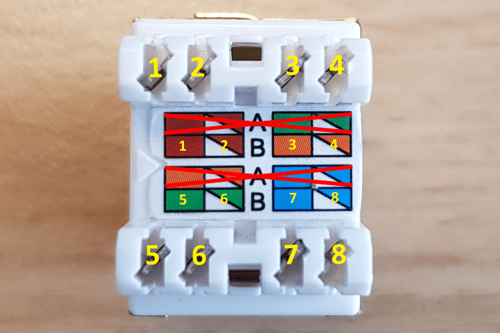 Zoals hiervoor al eerder besproken hebben keystones een LSA strook met twee kleurvolgordes, aangegeven met een A en een B. In Europa wordt altijd standaard de B-norm gehanteerd. Bij het monteren van een stugge kabel op de keystone dient dan ook de kleurvolgorde te worden aangehouden welke wordt aangegeven met de B. Maar per keystone kan deze kleurvolgorde dus verschillen en dit is waar vaak de verwarring ontstaat. Wanneer je wijzigingen gaat aanbrengen in een bestaand netwerk bijvoorbeeld kabels op de werkplek netjes afmonteren, controleer dan aan de pachtkast welke kleurcodering is toegepast.