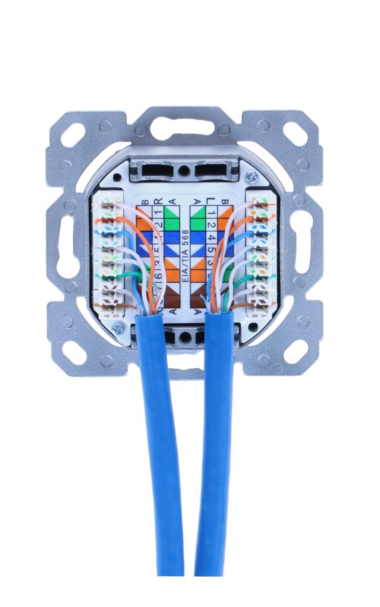 Ziet de installatie er volgens onderstaande afbeelding uit? Dan heb je succesvol een UTP-kabel op een wandcontactdoos aangesloten! De in- of opbouwdoos is nu klaar voor gebruik!